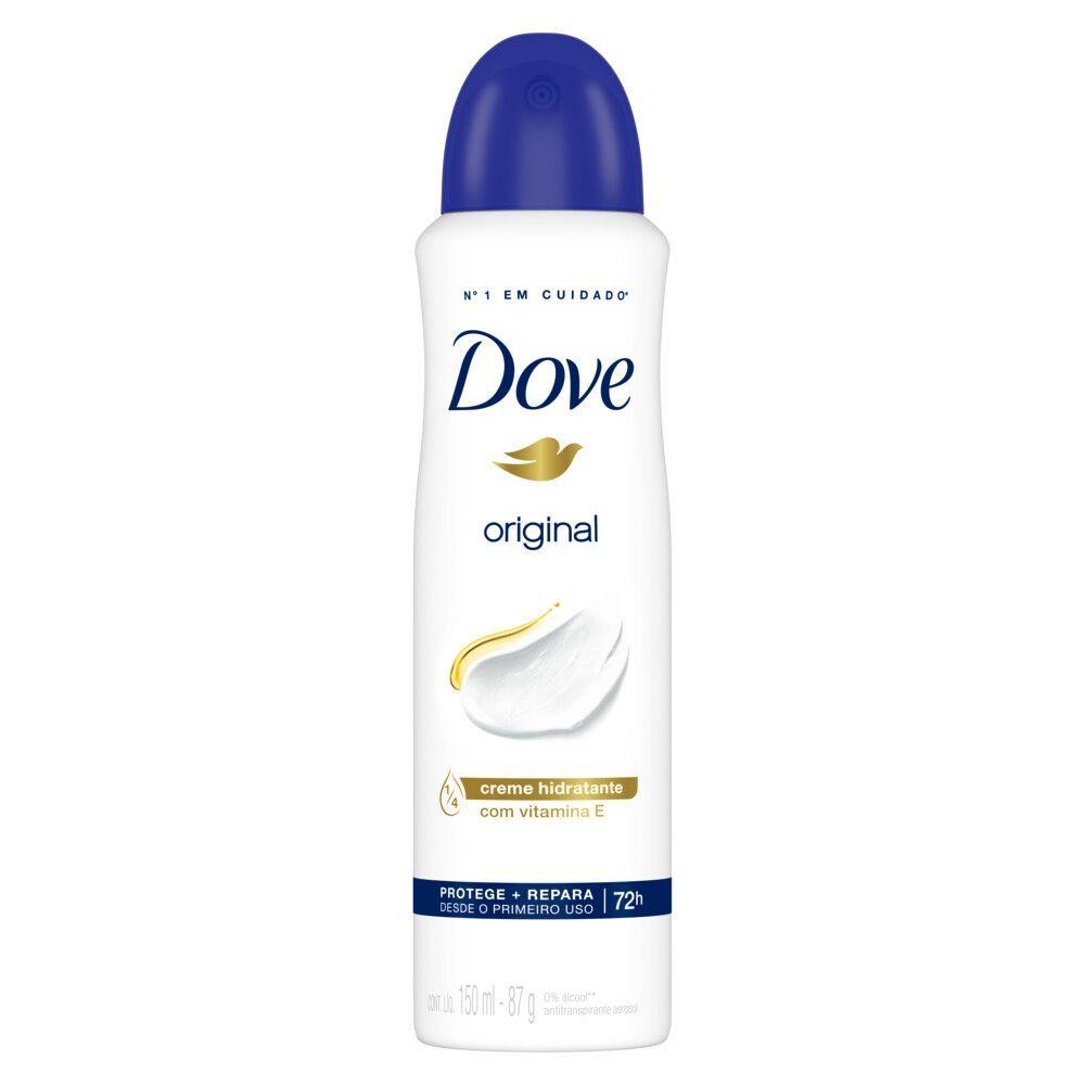 Kit 6 Desodorantes Dove Antitranspirante Aerossol Original 150ml O Desodorante Antitranspirante Aerosol Dove Original possui fórmula 0% álcool e com 1/4 de creme hidratante para cuidar da pele delicada da área das axilas, deixando-a mais suave, macia e muito mais bonitas, além de oferecer até 48 horas de proteção antitranspirante. Dermatologicamente testado. * Kit Contém: 6 Desodorantes Dove Antitranspirante Aerossol Original 150ml cada * Compre Produtos Dove.