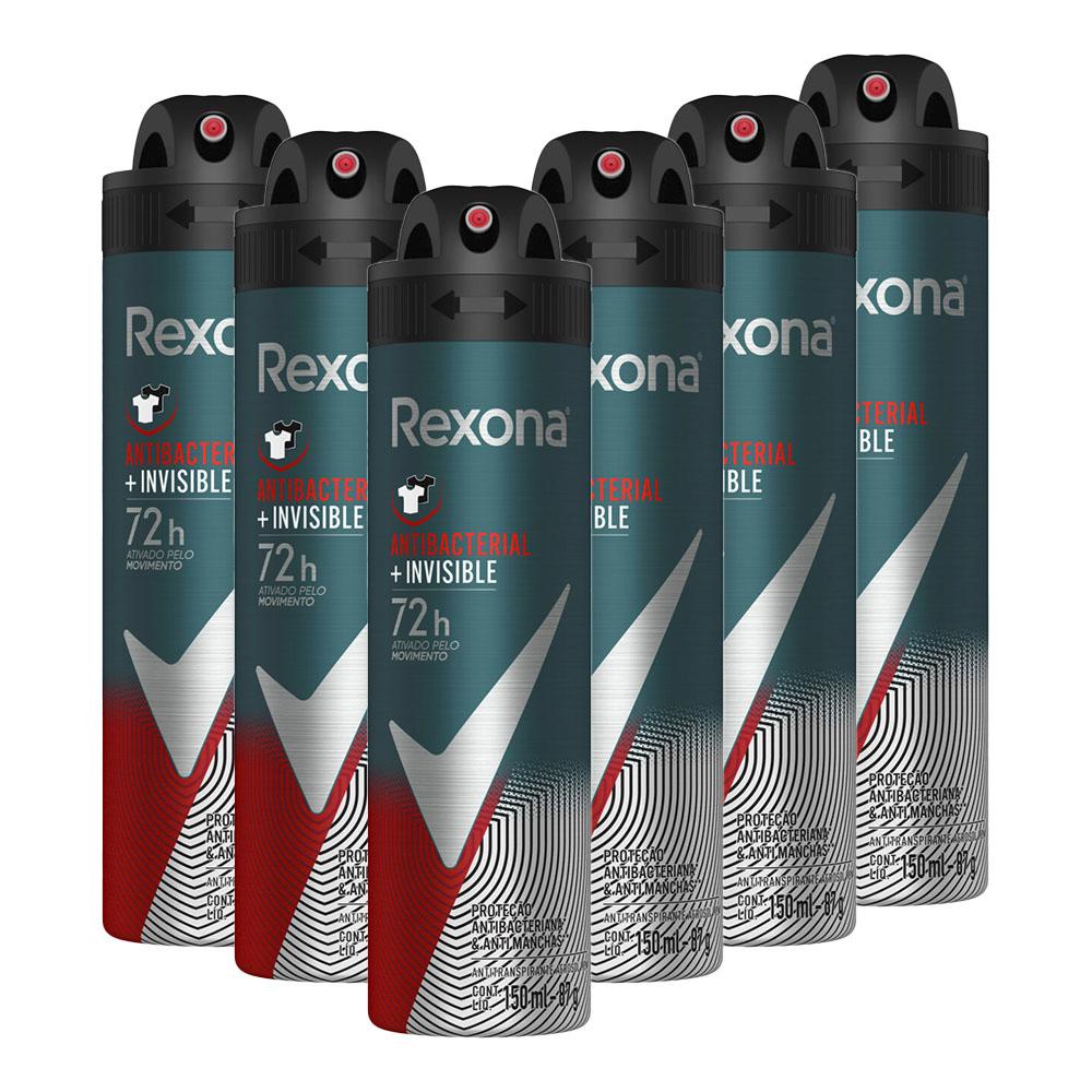 Kit 6 Desodorantes Rexona Men Motionsense Antitranspirante Aerossol Antibacterial e Invisible 150ml