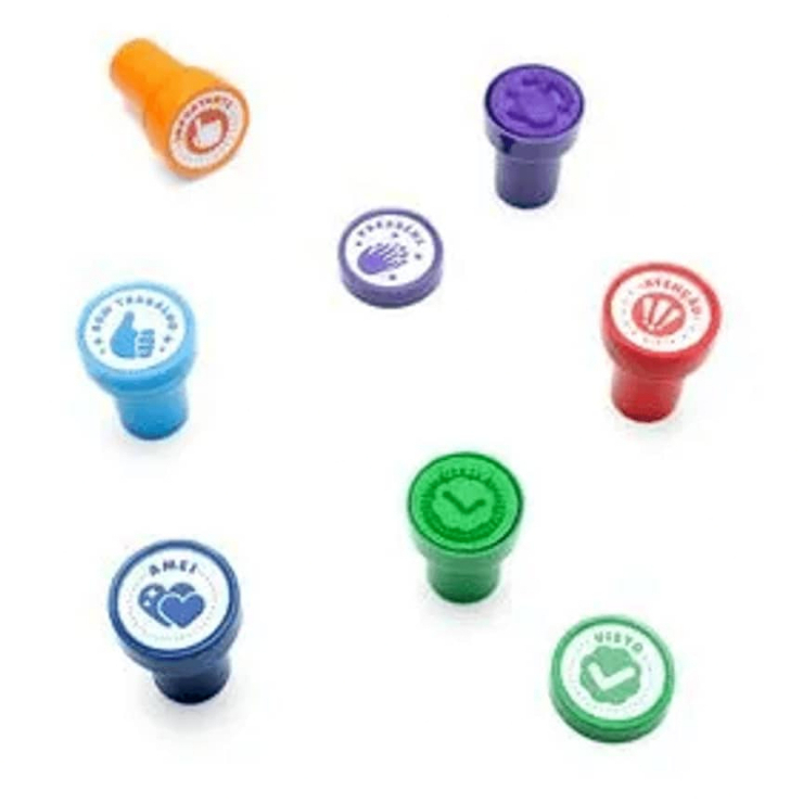 Kit 6 e 12 Carimbos com Tinta para Professores Pedagógico Educar e Ensinar Alunos Criança