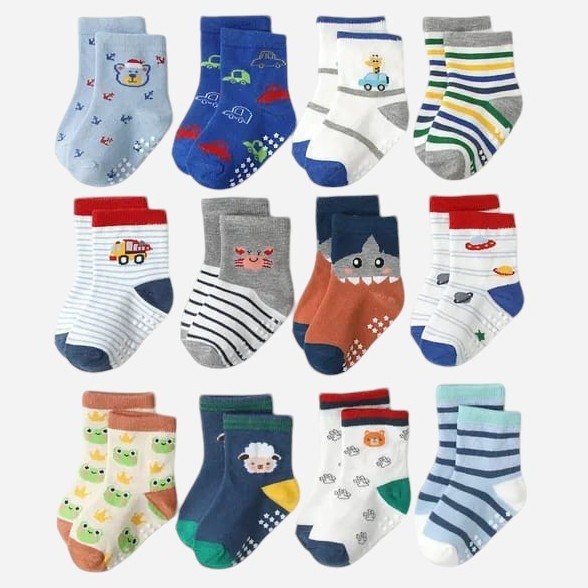 Kit 6 e 12 Pares de Meias Masculino para Recém Nascidos e Bebê Menino c/ Antiderrapante
