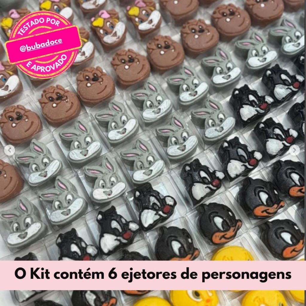 MODELADOR EJETOR LONE TUNES Disponível a Pronta Entrega – Enviamos em menos de 24 horas Dê um toque especial e profissional aos seus brigadeiros, docinhos, massas e biscoitos com nossos modeladores. Ideal para modelar doces, massas e muito mais, como: Brigadeiros, Docinhos, Biscoitos e Massas como pasta americana, fondant e pasta de açúcar. Também pode ser usado para artesanato. O KIT CONTÉM: - 1 Ejetor Perna-longa - 1 Ejetor Lolita - 1 Ejetor Piu - 1 Ejetor Frajolinha - 1 Ejetor Patolindo - 1 Ejetor Tas Informações Importantes: - Alta Qualidade e Resistência: Feito de plástico resistente e livre de BPA, garante durabilidade mesmo após várias utilizações. - Fácil de Usar: Coloque a massa no modelador, pressione e em segundos seus doces estarão prontos para encantar! - Sem Bagunça, Sem Grudar: O acabamento especial facilita a limpeza, economizando seu tempo e esforço. Utilize desmoldante e certifique-se de que a massa do brigadeiro esteja no ponto correto. - Ergonomia e Precisão: Com design ergonômico, proporciona firmeza durante o uso, permitindo um trabalho rápido e eficiente. - Encaixe Perfeito: Molda os doces de forma impecável e solta facilmente, mantendo a forma. - Quantidade: o kit contém 6 personagens - Tamanho Aproximado da peça: 3,5cm x 3,5cm - Composição: Plástico PLA (Biopolímero Ácido Poliláctico) - material biodegradável, feito de amido de milho e outros materiais naturais, seguro para alimentos. - Indicado para Brigadeiros de 15 a 22 gramas. - Cor: Rosa Com esse modelador você garante que cada doce saia perfeito e uniforme, ideal para festas, eventos ou vender em caixinhas ou unitários. Cuidados com o produto: - Não expor o ejetor ao calor ou água quente, risco de deformação do produto. - Limpar e Lavar com água corrente fria e sabão neutro. MIMO CORTADORES Aqui você encontra tudo o que precisa para criar, inovar e dar vida às suas ideias. Conheça nossos produtos e transforme seus doces em verdadeiras obras de arte.