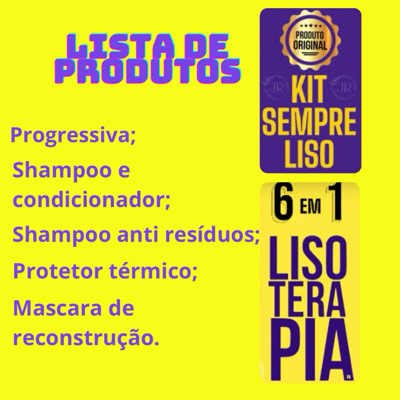 Kit 6 em 1 Lisoterapia - Progressiva Shampoo Condicionador Protetor Térmico anti resíduo Capilar Máscara