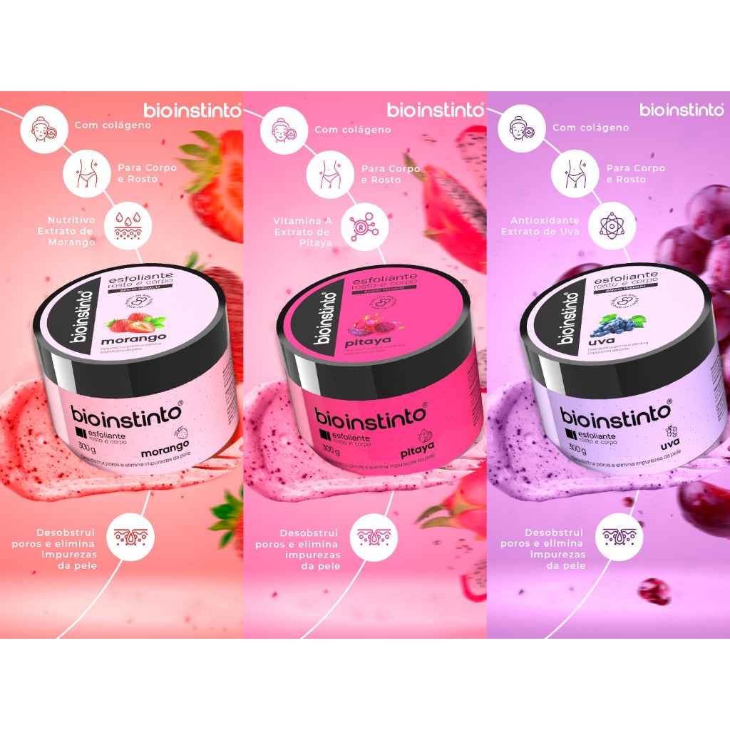Kit 6 Esfoliante Corpo e Rosto Skin care Limpeza Profunda Fragrancias Sortidas Bio Instinto 300g