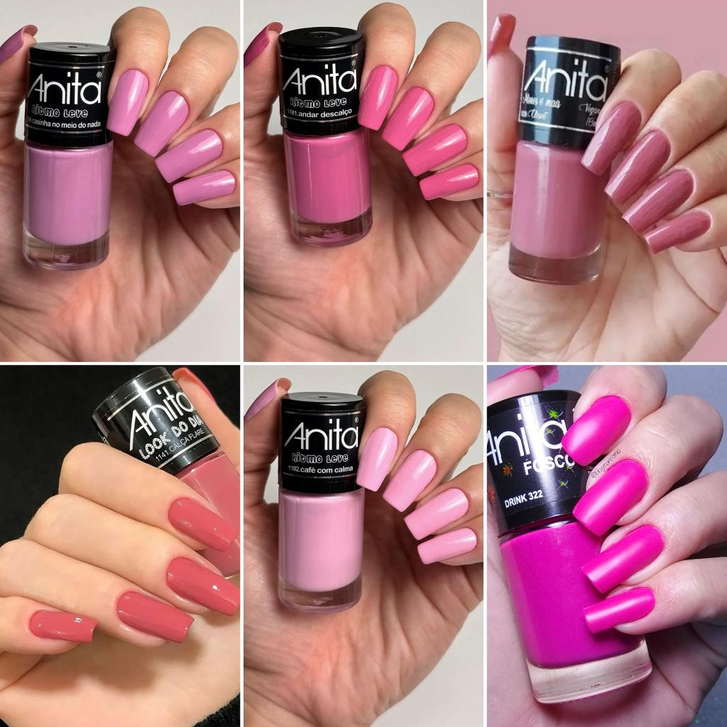 Kit 6 Esmaltes Anita Tons de Rosa Pink Cremoso e Perolado