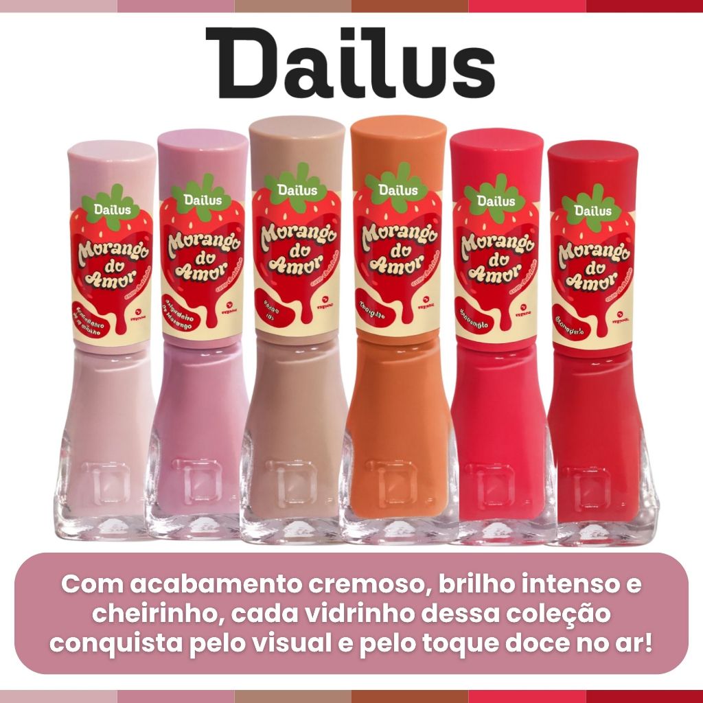 Kit 6 Esmaltes Dailus Nova Coleção Morango do Amor Esmalte Atacado Cheirinho