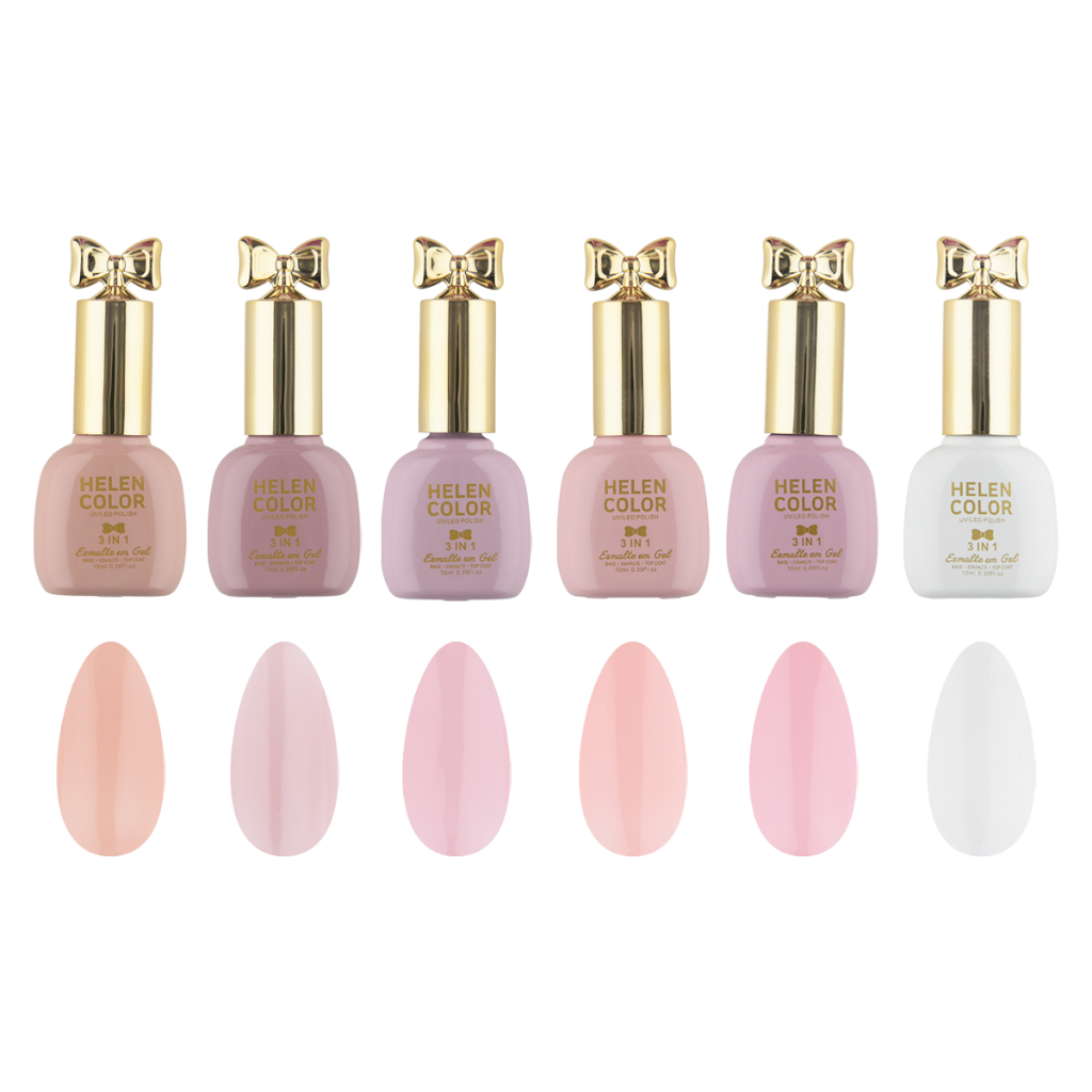 Kit 6 Esmaltes Helen Color 3 Em 1 Top Coat Base Uv/led - 60ml
