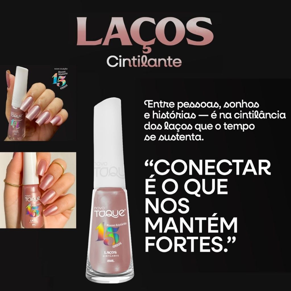 A coleção comemorativa de 15 anos da Novo Toque celebra a história da marca com seis cores exclusivas, sofisticadas e cheias de brilho. Cada esmalte carrega um acabamento especial, pensado para iluminar as unhas com elegância e destacar qualquer produção, desde o dia a dia até ocasiões mais festivas. A fórmula oferece excelente cobertura, secagem rápida e longa duração. A seguir, a descrição individual de cada tonalidade: . Legado – Perolado Um tom perolado iridescente que reflete nuances suaves conforme a luz. É perfeito para quem ama unhas delicadas com brilho sofisticado. A cor entrega um efeito cintilante moderno, ideal para usar sozinho ou como sobreposição em outras tonalidades. . Laços – Cintilante Um rosa cintilante clássico e elegante. A pigmentação é equilibrada, resultando em uma aparência suave, romântica e feminina. O acabamento cintilante realça o esmalte com toques luminosos, deixando as unhas com ar refinado. . Capítulo 15 – Cintilante Um nude champagne cintilante, leve e sofisticado. Essa cor é perfeita para quem prefere tons neutros, mas não abre mão de brilho e personalidade. O efeito cintilante deixa o acabamento elegante e atemporal. . Memórias – Areia Líquida Um dourado areia líquida com muito brilho e textura especial. O acabamento sand adiciona profundidade e destaque às unhas, criando um efeito glamouroso e único. Ideal para quem ama esmaltes texturizados e cheios de presença. . Vivências – Areia Líquida Um bronze escuro em acabamento areia líquida, com brilho marcante e textura elegante. A combinação do metalizado com a textura sand cria uma aparência intensa e moderna, perfeita para ocasiões especiais. . Nosso Brilho – Areia Líquida Um tom champagne claro com partículas brilhantes e efeito areia líquida. É uma cor versátil, sofisticada e muito iluminada, ideal para quem adora brilho refinado nas unhas. A textura adiciona um toque de exclusividade ao esmalte.