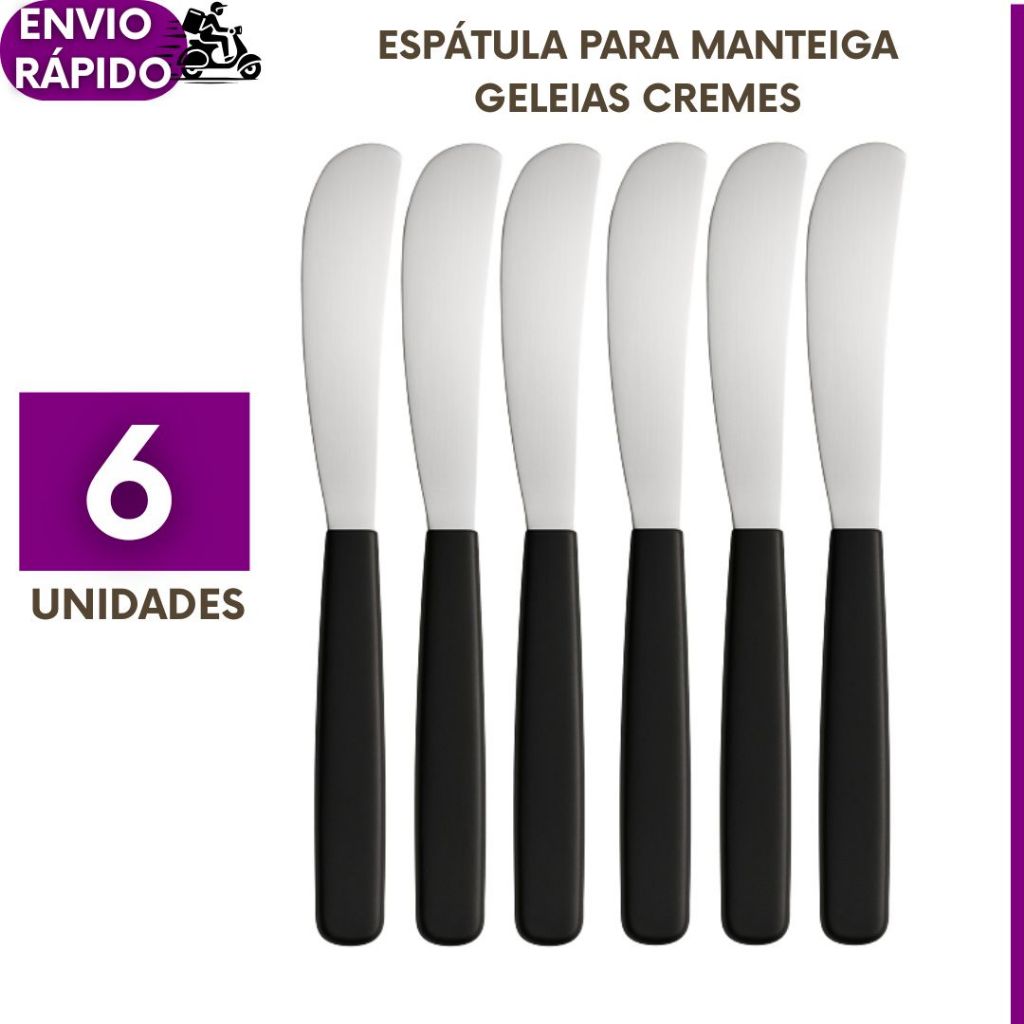 Kit 6 Espátulas Para Manteigas Requeijão Geleias Patês Premium Inox Cabo Preto Pão Café Cozinha