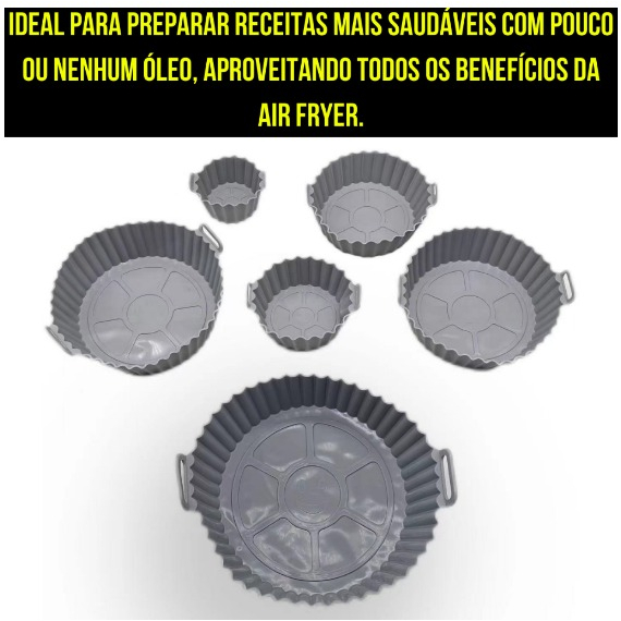 | Kit 6 Forma Silicone Air Fryer Tamanhos Variados - Micr Fritadeira ... este produto | R$ 19,99 | — | 4.7/5 | 91 |
