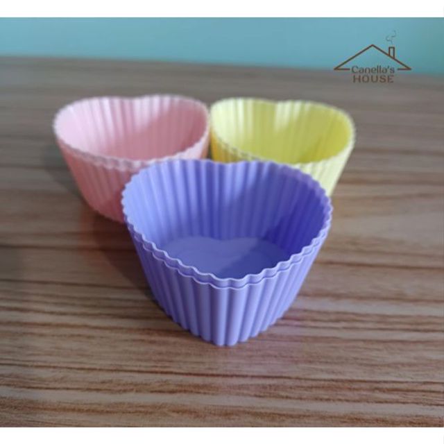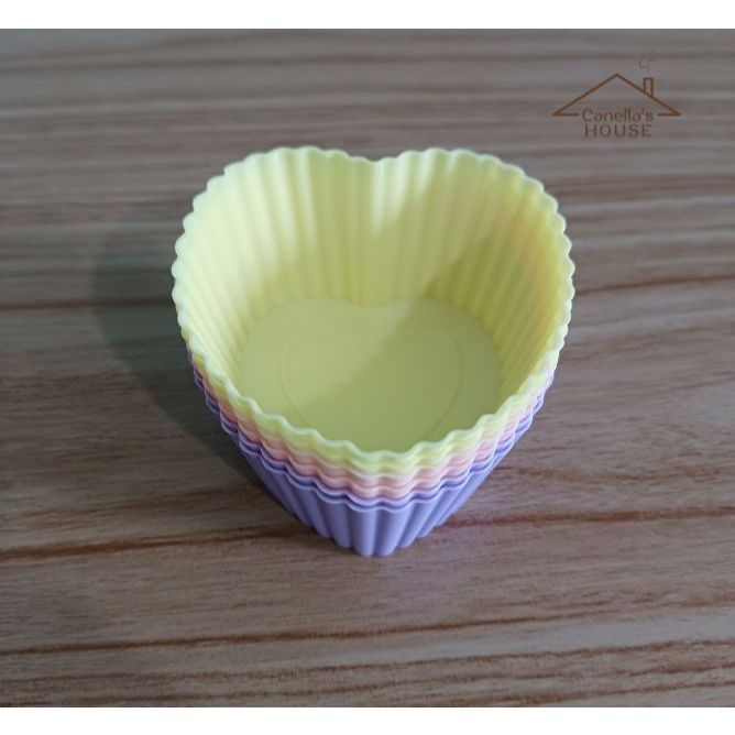 Kit 6 Forminhas Formas Cupcake 7cm Bolo Muffin Doces Silicone Formato Coração Colorido Cosy