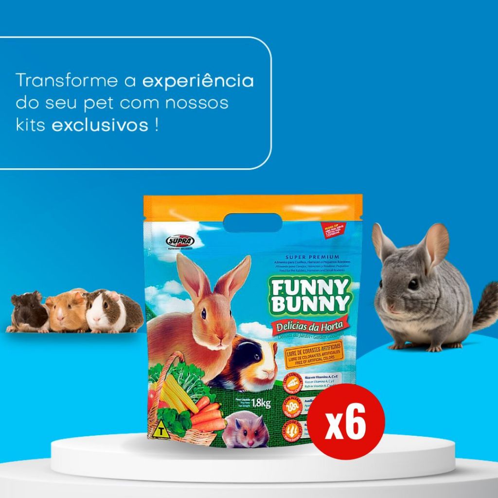 Kit 6 Funny Bunny Delícias da Horta 1,8kg Ração para Coelhos e Roedores Supra