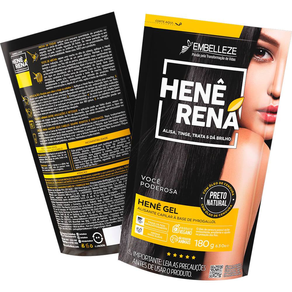 Uma atitude que vem do jeito de ser. Vem da vontade de se destacar e de encantar. Uma exuberante Morena, cheia de beleza, força e paixão. Naturalmente Poderosa. Assim como esse Henê Rená que agora é seu mais fiel companheiro, aquele que vai trazer para você o poder do liso, a personalidade da cor e o fascínio do brilho. Afinal toda Morena Poderosa nasceu para brilhar!Este Kit Contém 06 Henês Rená Preto Natural IMPORTANTE: Este produto é incompatível com qualquer outro tipo de relaxante, alisante, colorações à base de amônia e descolorantes. Se você deseja usar estes produtos, deve esperar 6 meses, cortar todo cabelo tratado com Rená e aplicar somente na parte crescida e virgem do cabelo. Se desejar cobrir cabelos brancos, recomendamos nossa coloração Natucor, livre de água oxigenada e amônia. Se você coloriu, descoloriu ou usou outro tipo de alisante, aguarde 30 dias antes de aplicar o Henê Gel Rená. Não é recomendado para gestante. DESCRIÇÃO CURTA Uma atitude que vem do jeito de ser. Vem da vontade de se destacar e de encantar. Uma Exuberante Morena cheia de beleza, força e paixão. Naturalmente Surpreendente. Assim como esse Henê Rená que agora é seu mais fiel companheiro, aquele que vai trazer para você o poder do liso, a personalidade da cor e o fascínio do brilho. Afinal toda Morena Surpreendente nasceu para brilhar! AÇÃO Alisa progressivamente, pinta de preto e dá brilho aos cabelos. ATIVOS EXTRATO DE CAFÉ: Confere maciez e maleabilidade à fibra capilar. BENEFÍCIOS😊😊 Seus cabelos mais lisos, tratados, cheios de brilho e movimento a cada aplicação Tinge os fios brancos gradativamente. RESULTADO Você sempre linda e surpreendente faça chuva ou faça sol. COMPOSIÇÃO AQUA, ZEA MAYS (CORN) STARCH, MANIHOT UTILISSIMA STARCH, AMMONIUM CHLORIDE, PYROGALLOL, CUPRIC CHLORIDE, SODIUM BENZOATE, PARFUM, LINALOOL, FERROUS SULFATE, SODIUM HYDROXIDE, CI 77266, BUTYROSPERMUM PARKII BUTTER, PILOCARPUS PENNATIFOLIUS LEAF EXTRACT. Tipos de cabelo