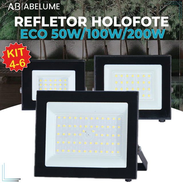Kit 6 Holofote Refletor Led ECO Pro 200W 100W 50W Luz Fria 6500K IP65 Bivolt Iluminação Externa