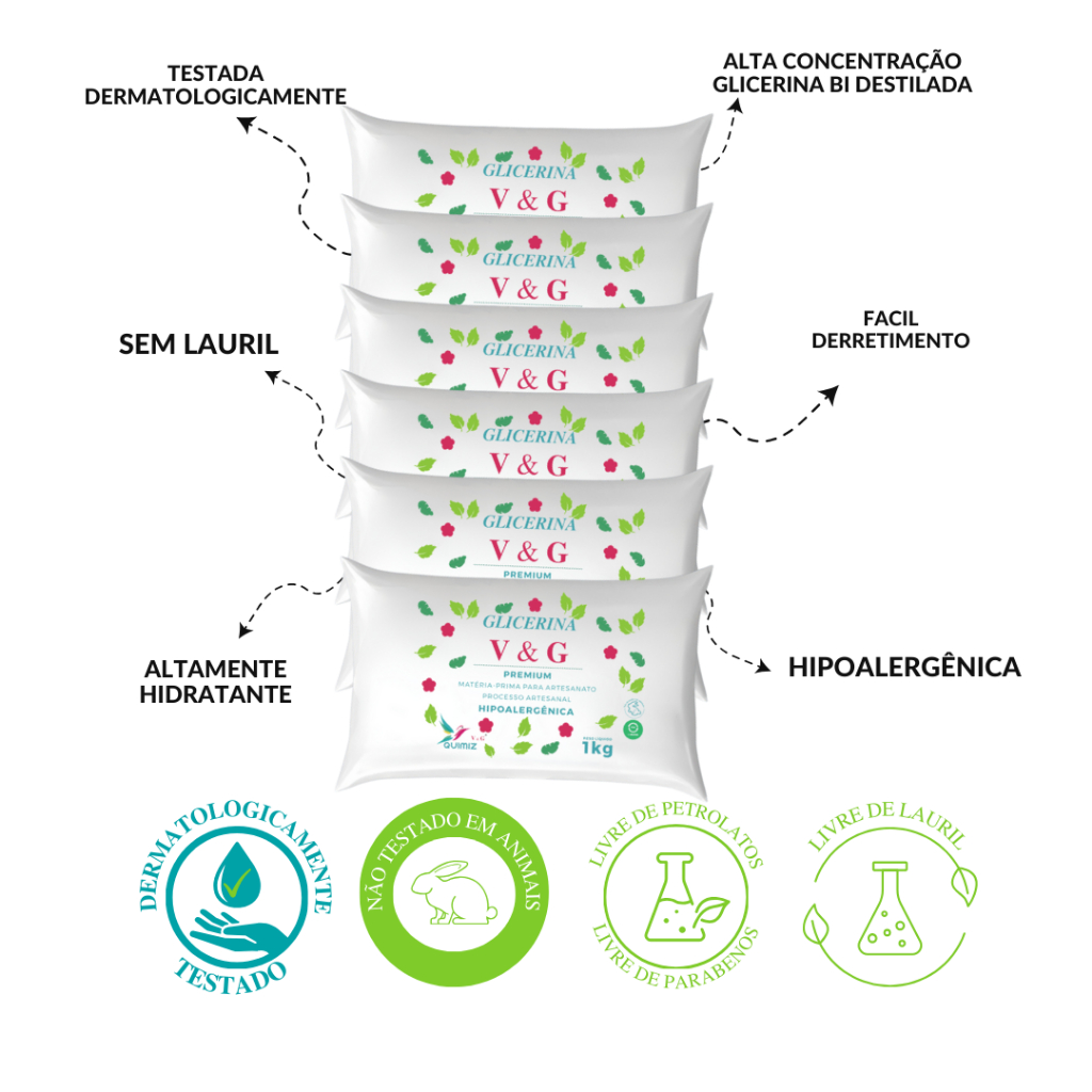 KIT 6 KG - BASE GLICERINA HIPOLERGENICA PREMIUM QUIMIZ V&G