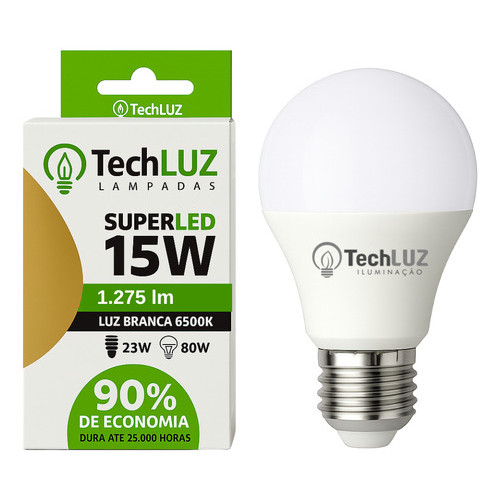 Kit 6 Lâmpadas Led 15w 6500k E27 Luz Branca Fria Techluz