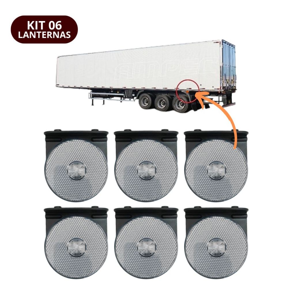 Kit 6 Lanterna Lateral LED Para Caminhão Randon Guerra Librelato Facchini Bivolt Cristal Com Suporte