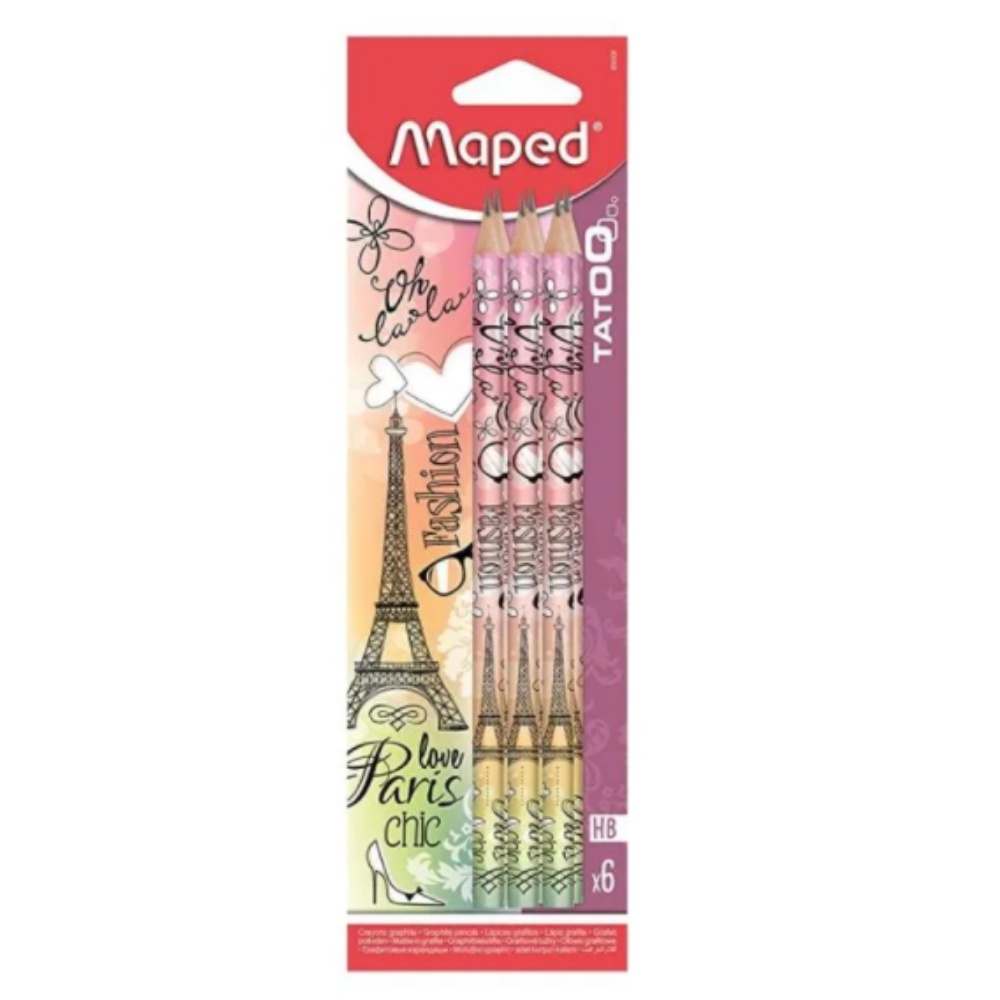 Kit 6 Lápis Grafite Tatoo Maped Hb Paris Pow Triangular