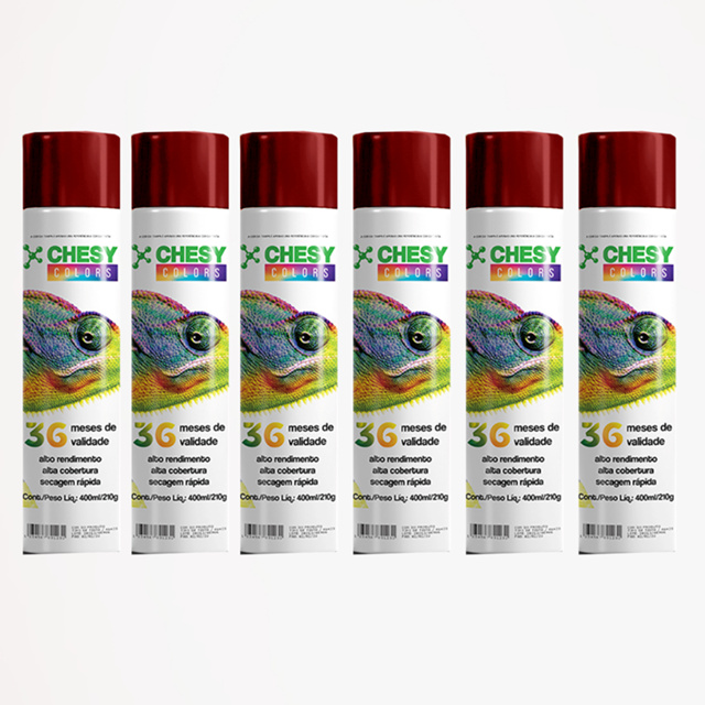 Kit 6 Latas de Tinta Spray Metalico Vermelho 400ml Chesy