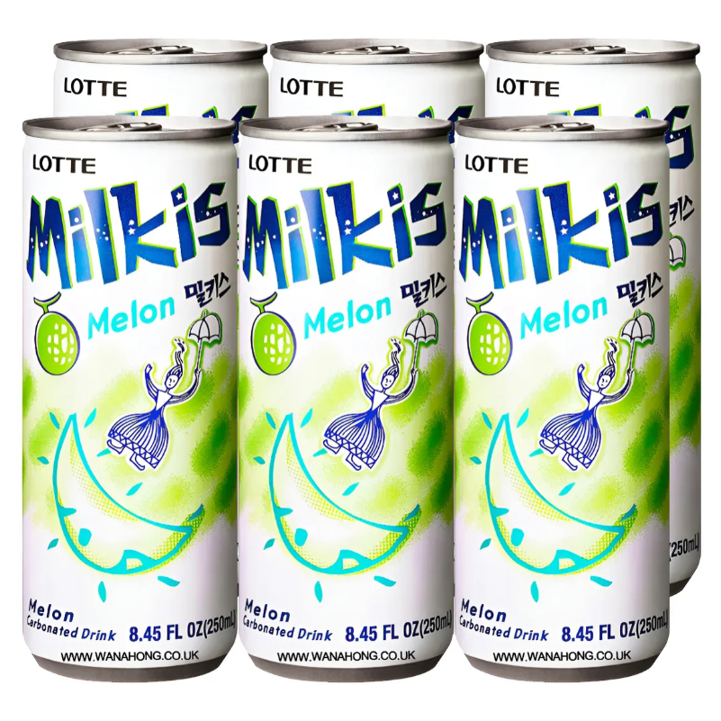 Kit 6 Latas Milkis Coreano Lotte 250ml | Refrigerante com Leite | Sabores Variados | Sem Cafeína | Mimos Korea