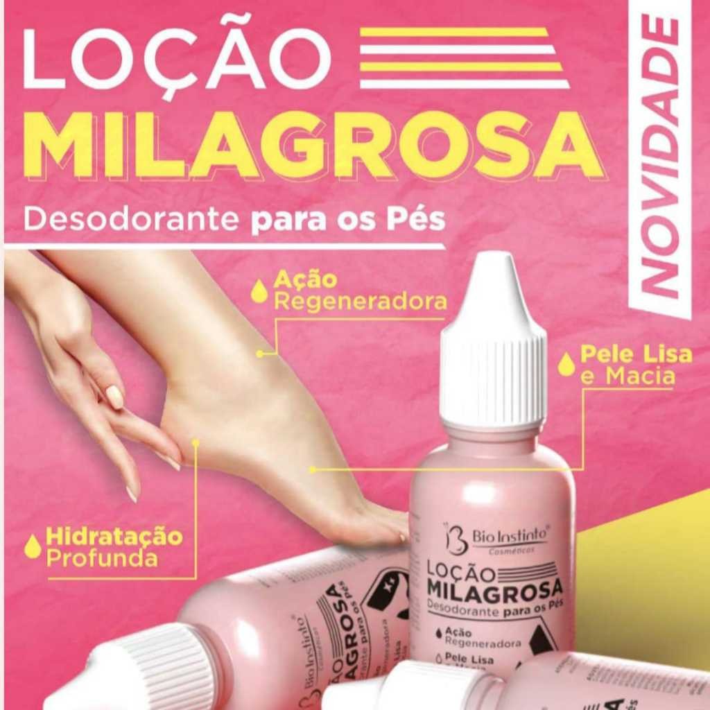 REVOLUÇÃO NO CUIDADO DOS PÉS: SUAVIDADE E CONFORTO EM CADA PASSO! kit 6 Loção Milagrosa Desodorante para os Pés Bio Instinto - A Transformação Definitiva Com Tecnologia Anti-Ressecamento! Prepare-se para uma experiência única em cuidados com os pés! A Loção Milagrosa Bio Instinto não é apenas um hidratante comum - é uma revolução completa que transforma seus pés desde as camadas mais profundas, combinando ativos especializados que combatem ressecamento, rachaduras e odores indesejados, tudo em uma fórmula clinicamente desenvolvida! Benefícios transformadores para seus pés: Hidratação Profunda que elimina ressecamentos e rachaduras Tecnologia Anti-odor que garante proteção prolongada Ativos Naturais que amaciam e regeneram Textura ultra-penetrante que age nas áreas mais ressecadas Resultados visíveis desde a primeira aplicação Anti Fungos e Micoses em suas unhas