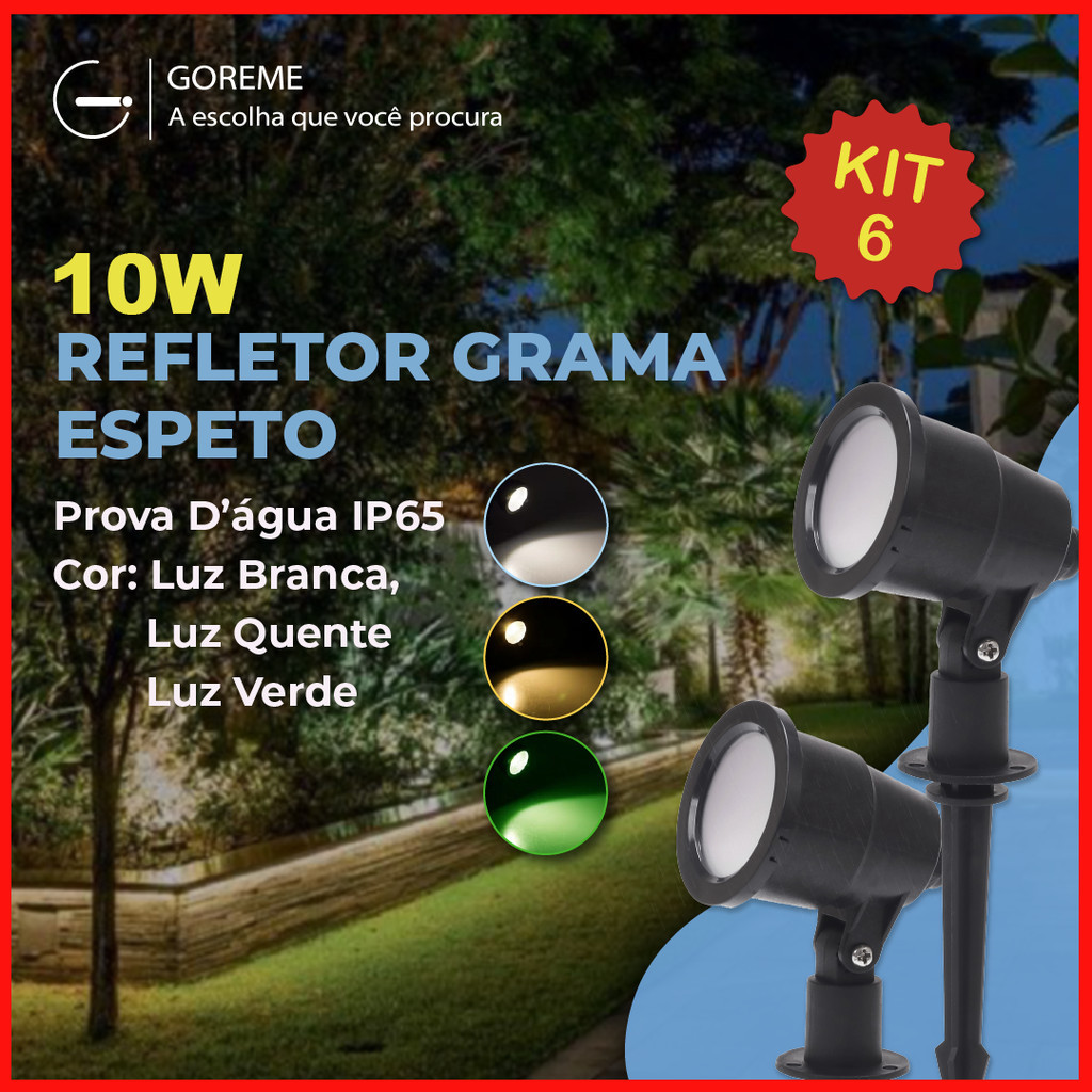 | Kit 6 Luminária Espeto Jardim 10W LED | Luz de Gramado |À Prova D'à... este produto | R$ 66,90 | 60% | 5.0/5 | — |