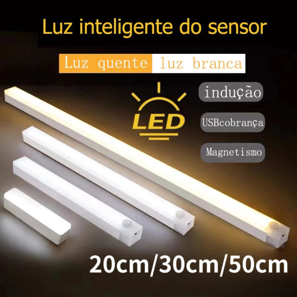 Kit 6 Luminaria LED Sem Fio Com Sensor Inteligente 50cm / 30cm Luz Para Escada Guarda-Roupa
