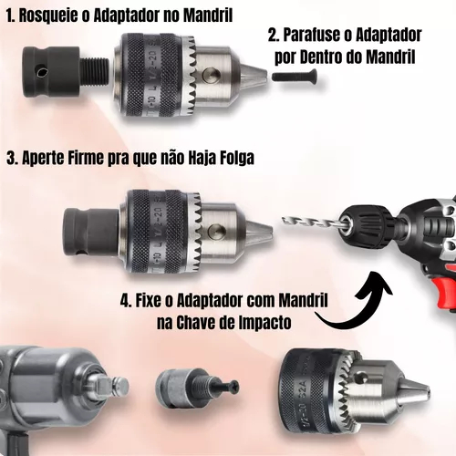 Kit 6 Mandril Chave 1/2 Rosca 1,5-13mm + Adaptador De Impacto