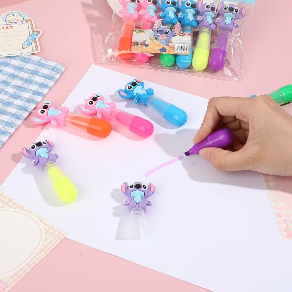 Kit 6 Marca Texto Stitch Colorido Fofo Mini Escolar Papelaria Escritório Estudos