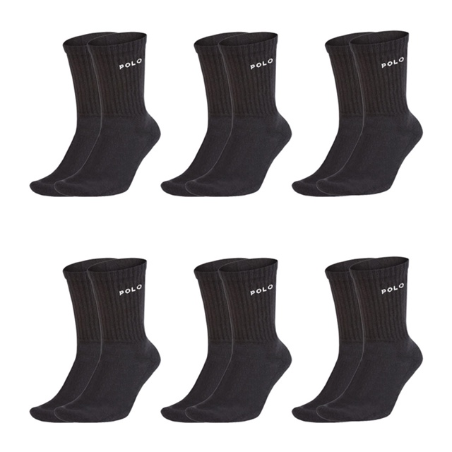 Kit 6 Meia Algodão Cano Médio Polo Star Preta