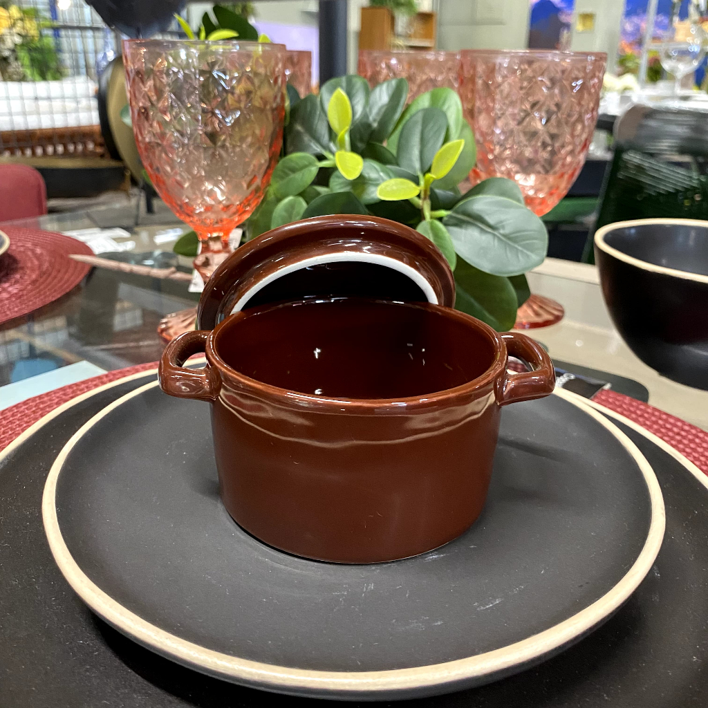 Kit 6 Mini Caçarola Cerâmica Marrom Esmaltada 250ml Moderna Panelinha Para Festa Buffet Servir