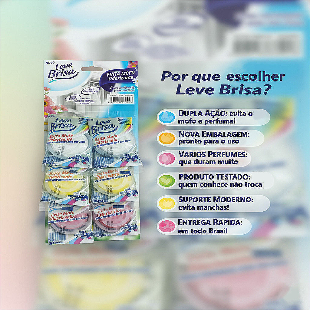 Kit 6 ou 12 Pastilhas Evita Mofo + Odorizante | Leve Brisa ️ Proteção contra umidade + perfume suave para seus ambientes Com o Kit com 6 ou 12 Pastilhas Evita Mofo Leve Brisa, você mantém seus espaços livres da umidade e ainda deixa um aroma leve e agradável no ar. Ideal para armários, gavetas, sapateiras, bolsas, caixas organizadoras e outros locais fechados. ️ Ação 2 em 1: antimofo + odorizante Fragrância suave e refrescante – Leve Brisa Contém 6 ou 12 pastilhas individuais Ajuda a prevenir mofo, bolor e maus odores Fácil de usar – basta posicionar no local desejado Conteúdo: 6 ou 12 unidades Uso recomendado: 1 pastilha por compartimento (pode variar conforme o tamanho do espaço) Duração média: Até 30 dias cada (dependendo da umidade) Praticidade, proteção e frescor para sua casa em um kit completo!