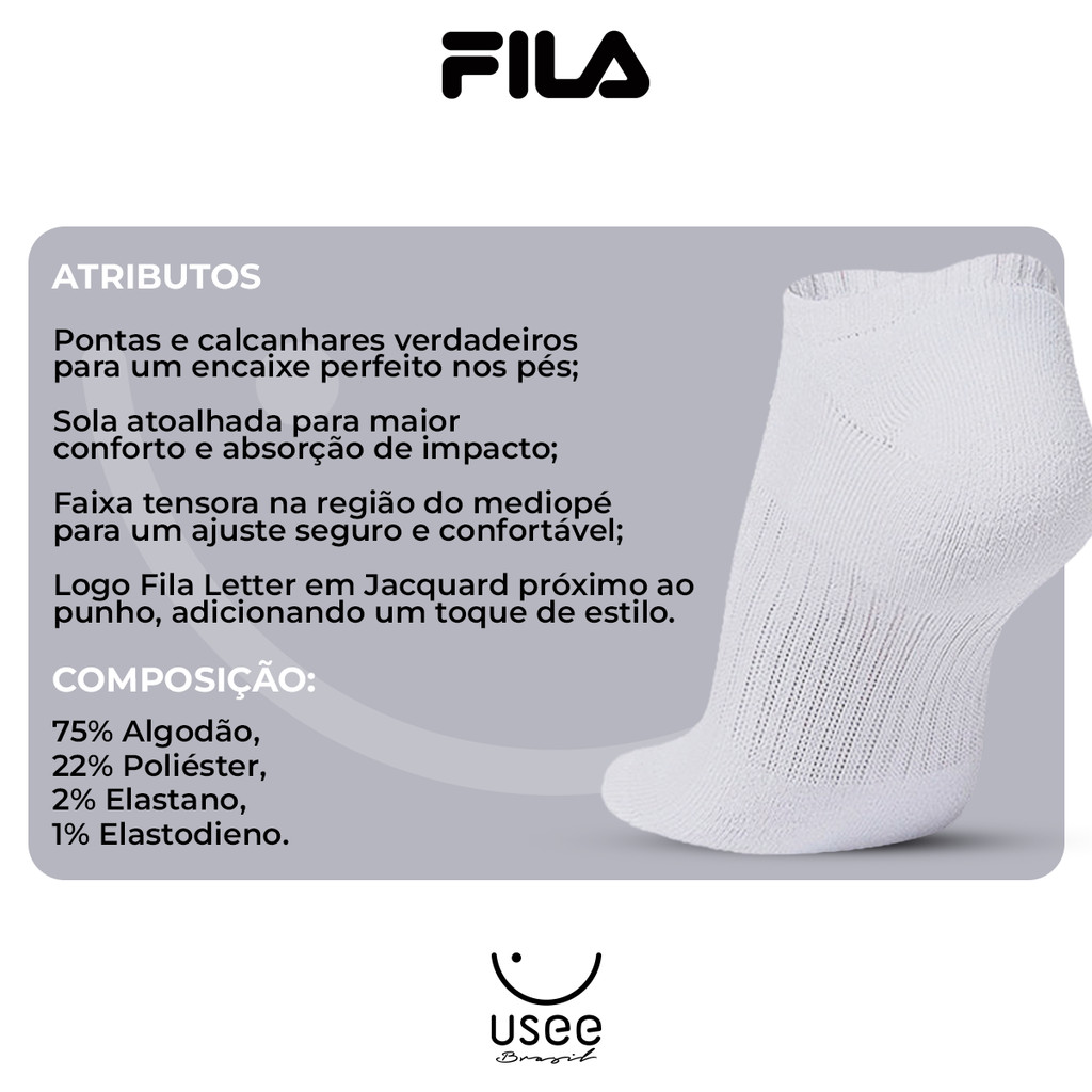 Kit 6 Pares de Meia Fila Cano Curto Unissex Algodão Confortável Original