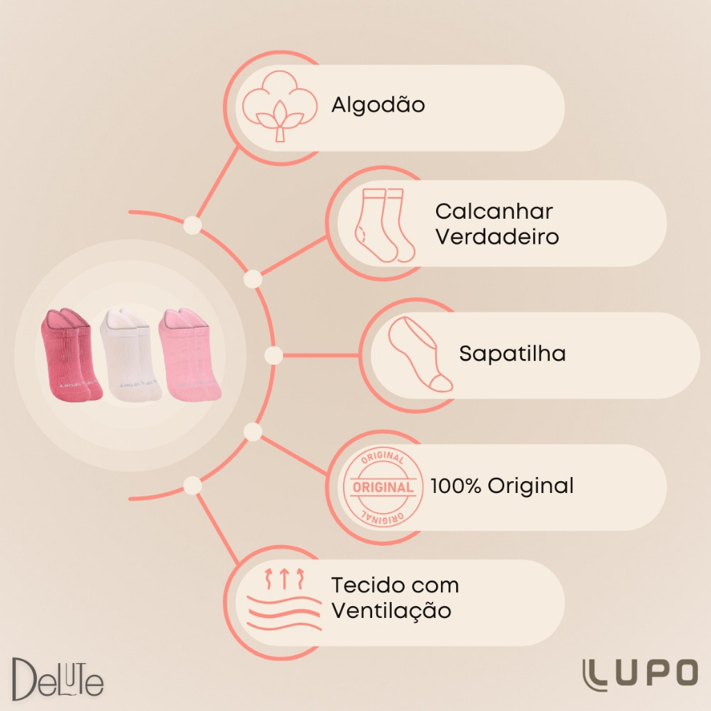 Kit 6 Pares De Meias Esportivas Lupo Soquete Sapatilha Femininas Em Algodao Original