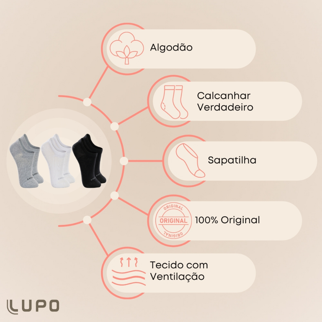 Kit 6 Pares de Meias Lupo Kids Sapatilha em Algodão Confortável Básica Lisa Unissex Infantil