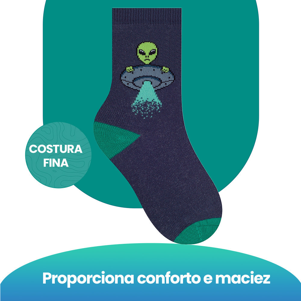 Kit 6 Pares De Meias Menino Menina Infantil Selene Calcanhar Verdadeiro Estampada