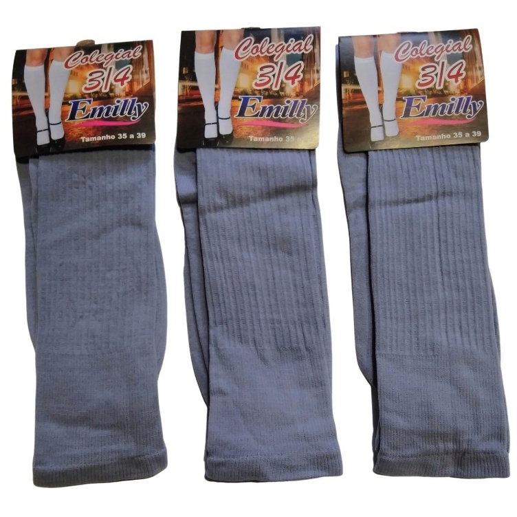 Kit 6 Pares Meia Escolar Colegial 3/4 Emilly Altura do Joelho para Menina 35 a 39