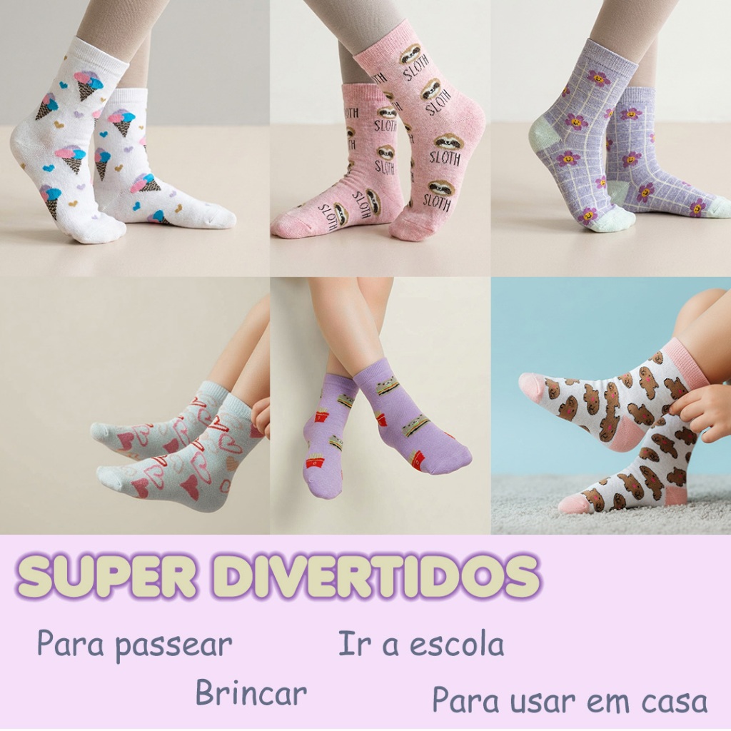 Kit 6 Pares Meia Infantil Menina Criança Coloridas Estampadas Capivara Divertida Escolar