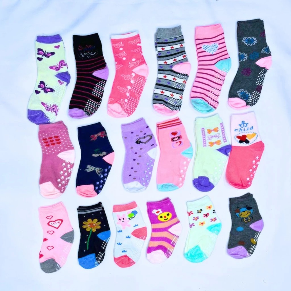 Kit 6 Pares Meias Infantil Menina Estampada Antiderrapante / De 2 a 4 Anos / A 6 a 8 Anos