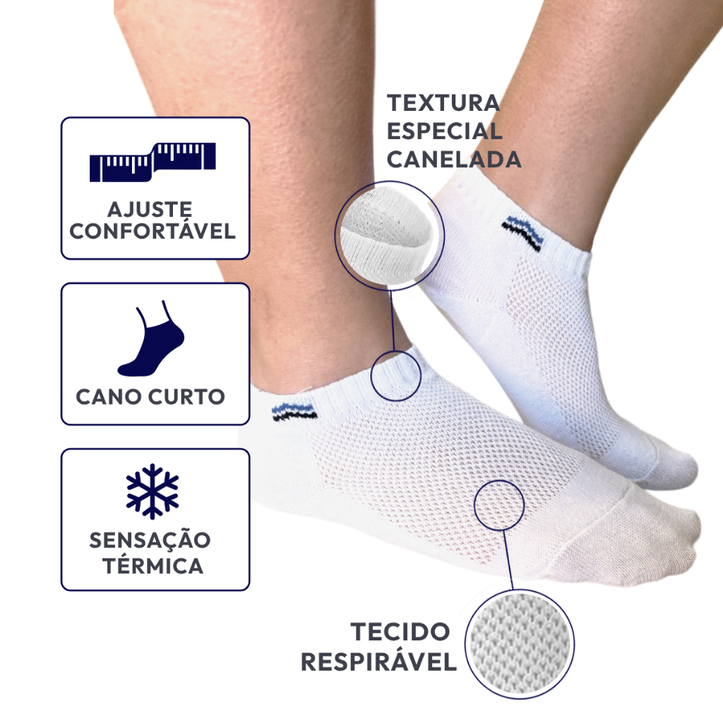 Kit C/6 Pares Meias Up Cano Curto Algodão 3225 Sortido Ideal para uso casual e atividades físicas, elas envolvem o pé de forma suave, podendo ser usada no dia-dia. Possuem calcanhar verdadeiro para maior conforto e ajuste perfeito. Características: - Meia performance básica. - Anatômica, faixa de compressão no peito do pé para maior estabilidade. - Tecido com ventilação, malha com textura especial, ajuda a regular a temperatura proporcionando maior conforto térmico. - Confeccionada em algodão penteado, desenvolvido por um processo em que as fibras mais curtas são eliminadas, retirando toda e qualquer impureza. Composição: 80.27% Algodão 10.92% Poliéster 5.10% Poliamida 3.71% Elastano Guia de Tamanho: P (29-33) M (34-38) G (39-43)