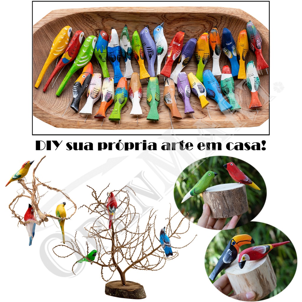 ATENÇÃO: Escolha o kit c/6 passarinhos corretamente na hora de comprar por favor! Kit Sairas e Kit Araras vem com cores coloridas como mostra na foto! Não há opção de escolher uma cor exata, agradecemos sua compreensão. Material: madeira e tinta com arame de metal. Comprimento aproximado: Tucano -11 cm ; Saíra : 8,5 - 10 cm ; Arara : 13 - 14 cm . Atenção: Poderá haver pequena variação das medidas por ser produto artesanal. & Passarinho artesanal feito e pintado a mão. Por isso será impossível de escolher as cores das saíras. Vem cores aleatóriamente de acordo com estoque. por favor não insiste. & Passarinho com arama, Use sua criatividade para criar sua arte. & Escolha os passarinhos corretamente de acordo com seu projeto.