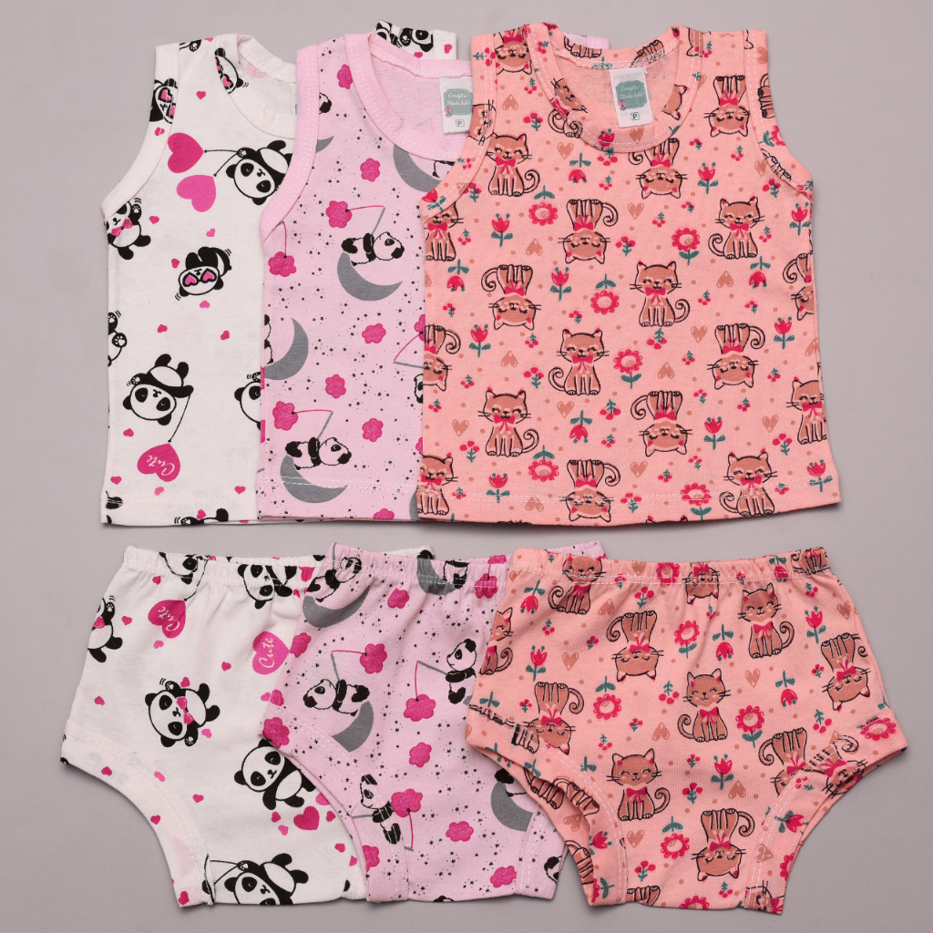Kit 6 Peças 3 Regata 3 Short Bebe Malha Verão Tapa Fralda Algodao Estampado Menino Menina