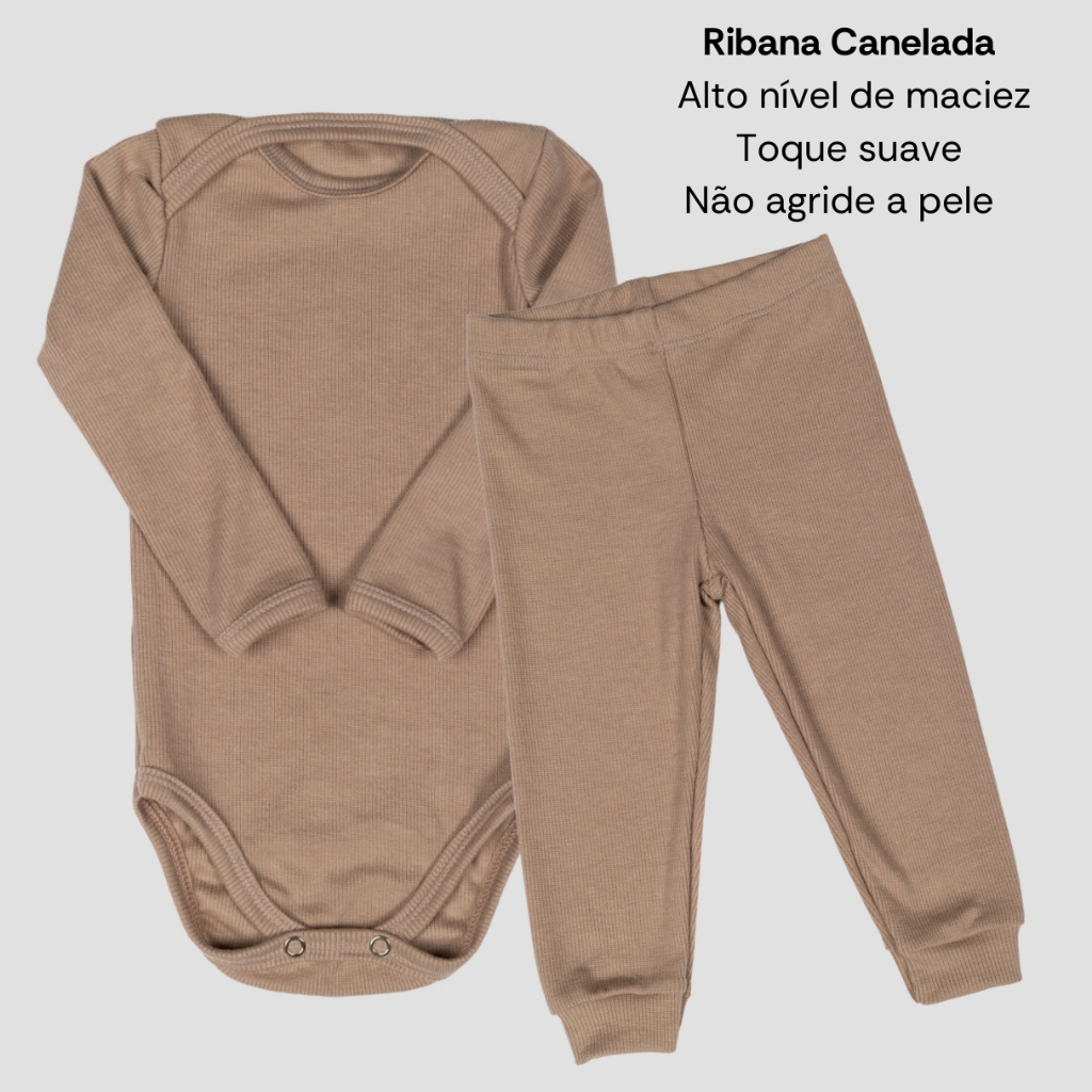 Kit 6 Peças Bebê RN ao GG Body Manga Longa e Calça Pagão Canelado Comfort 03k3