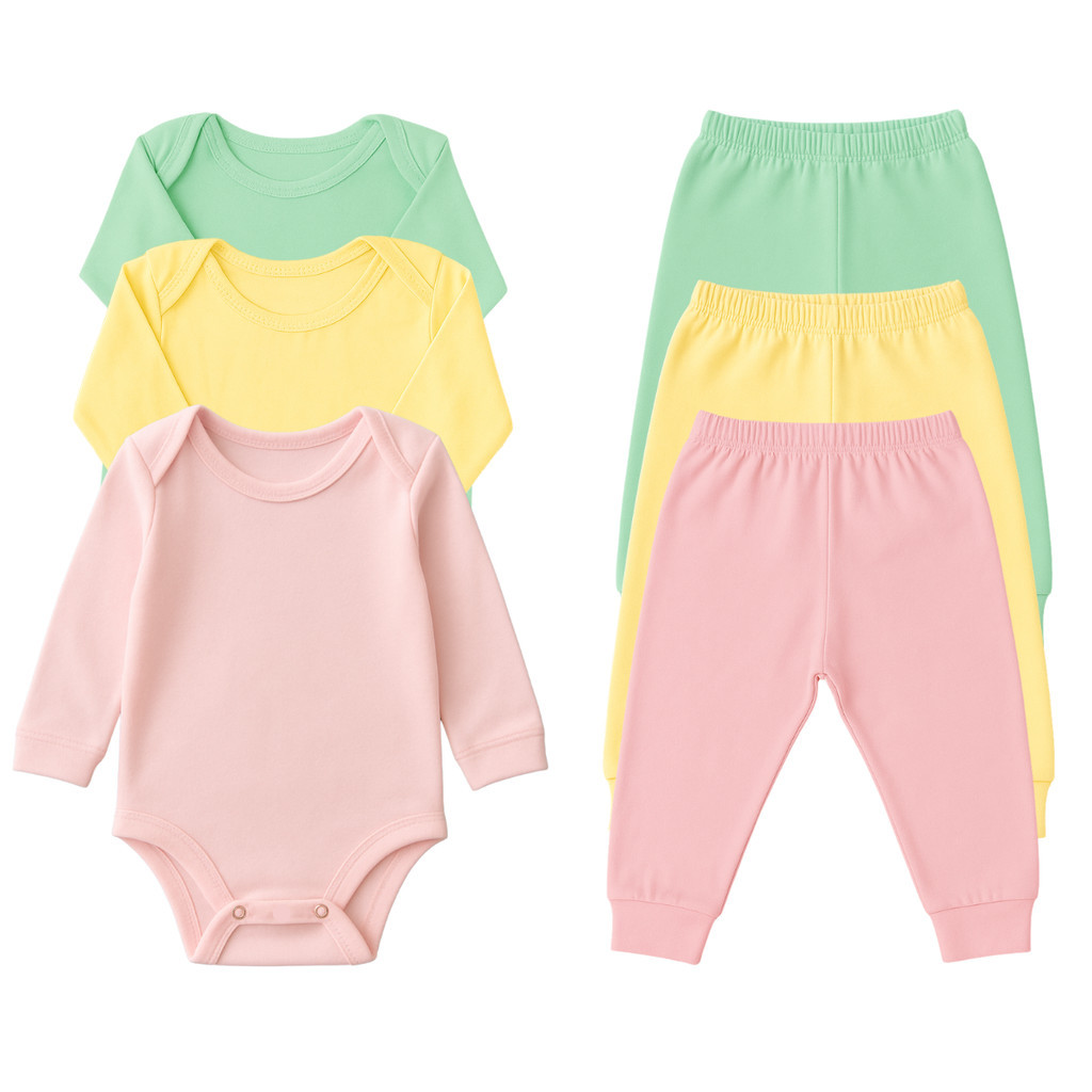 Kit 6 Peças Body Manga Longa e Calça Bebê 100% Algodão Antialérgico