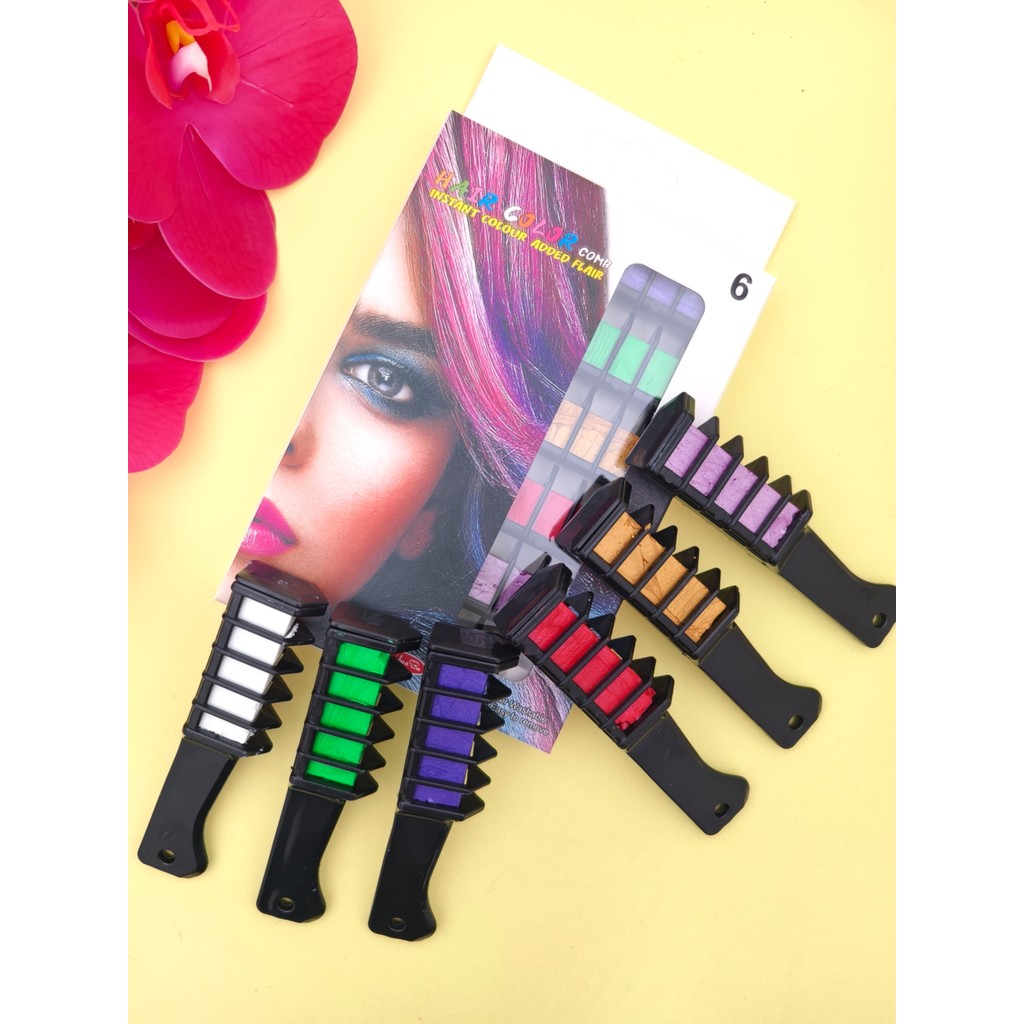 Kit 6 Pente Colorido Giz De Cabelo Com 06 Cores Temporárias Para Festas Criativo T-722-3