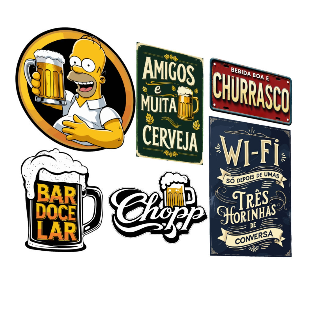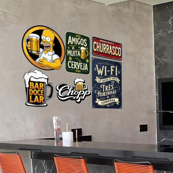 | Kit 6 Placas Decorativas Bebidas Cervejas Frases Churrasco este produto | R$ 39,90 | 56% | 5.0/5 | 25 |