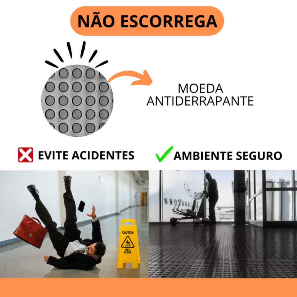 Kit 6 Placas Moeda Borracha Tapete Banheiro Não Escorrega Antiderrapante 50cm Larg x 50cm Comp