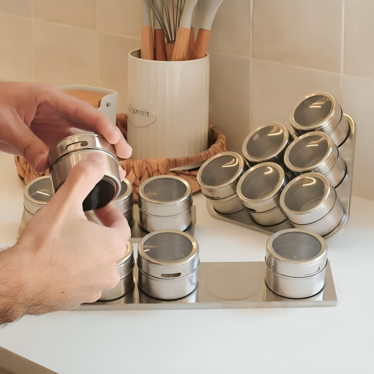 Kit 6 Porta Tempero Porta Condimento Inox Imã Magnético Com Imã Para Geladeira e Suporte Organizador de Temperos Imã