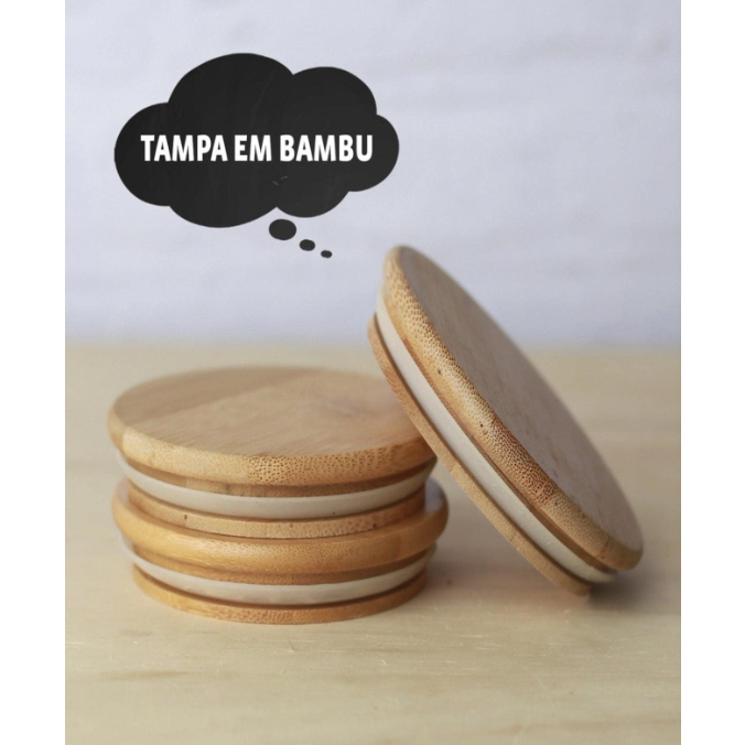 Kit 6 Pote De Vidro Porta Tempero Mantimentos Redondo com tampa de bambu 200ml