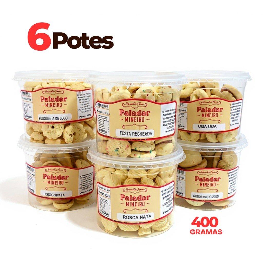 Kit 6 Potes Biscoitos Finos Amanteigados Recheados Paladar Mineiro Atacado Revenda