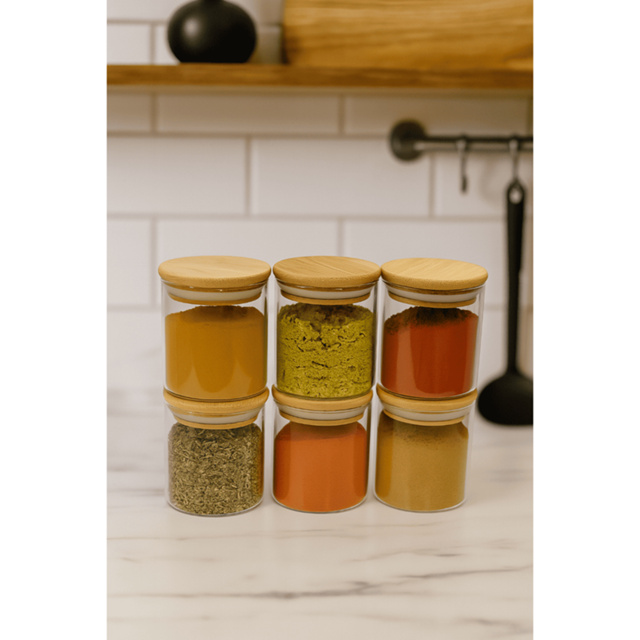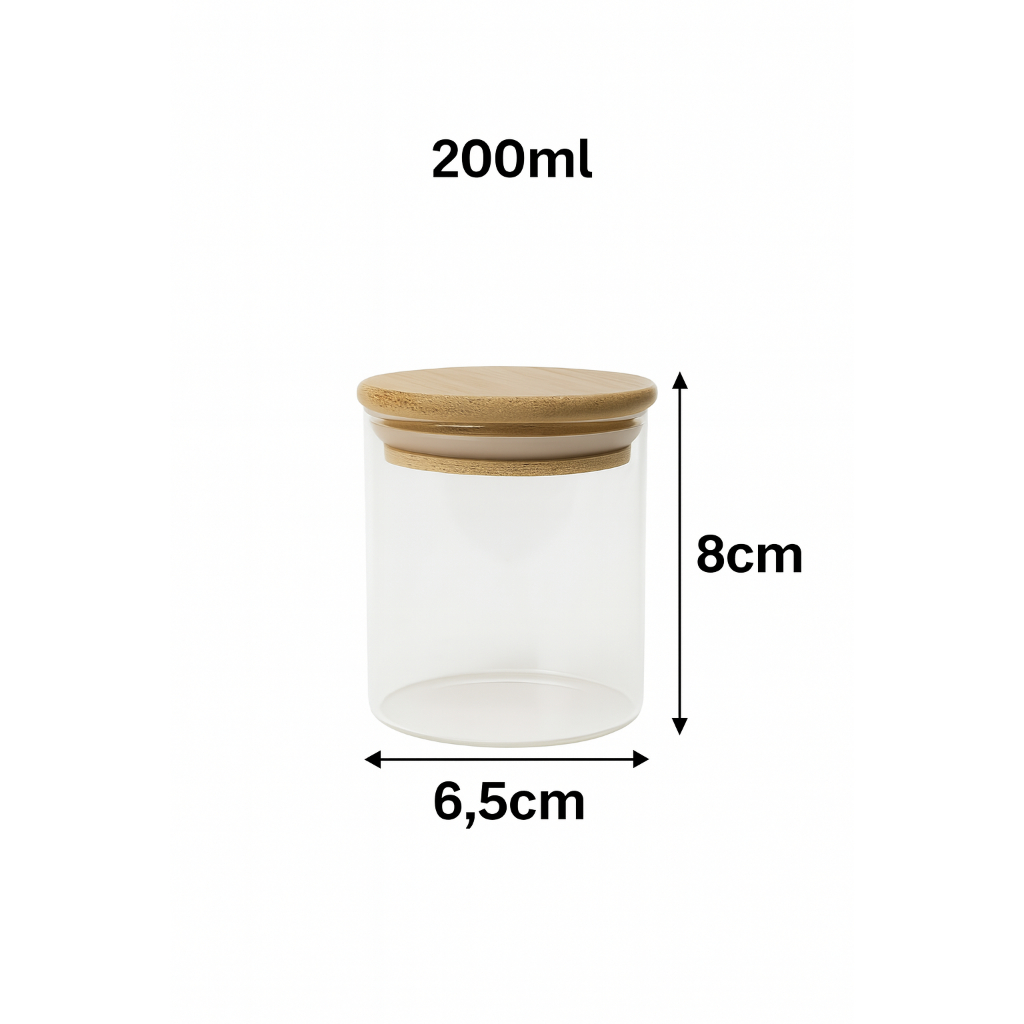 Kit 6 potes de Vidro 200ml com Tampa de Bambu Hermético